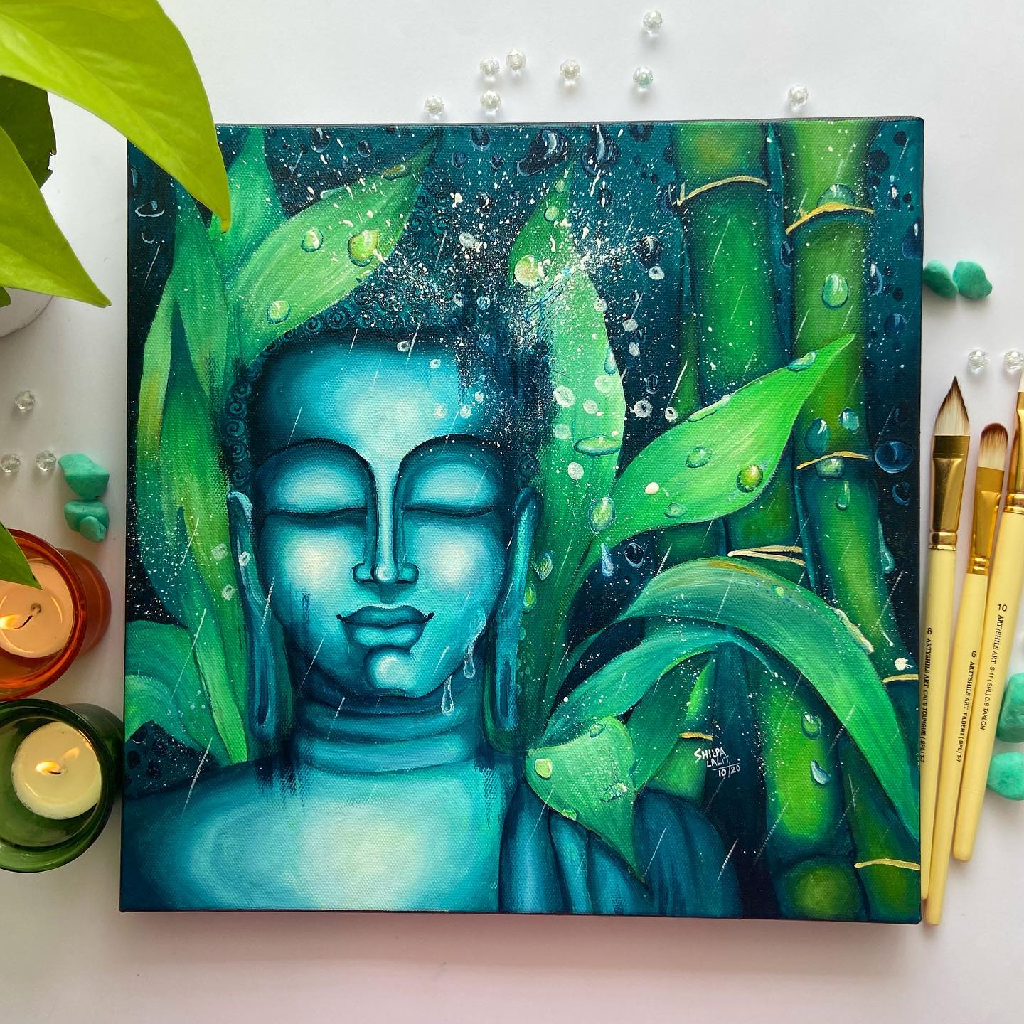 Learn everything from how to draw the drawing to each and every technique Shilpa Lalit used to create this beautiful Buddha surrounded with the magical bamboo forest and is being showered by the blessed rains.