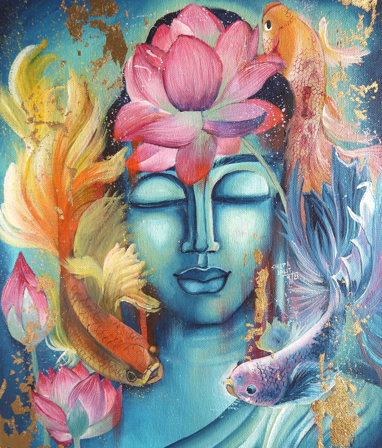 In this very detailed workshop, instrustor Shilpa Lalit, will take you through the entire painting step by step where you will learn how to paint this beautiful Buddha with some gorgeous fishes floating around him.